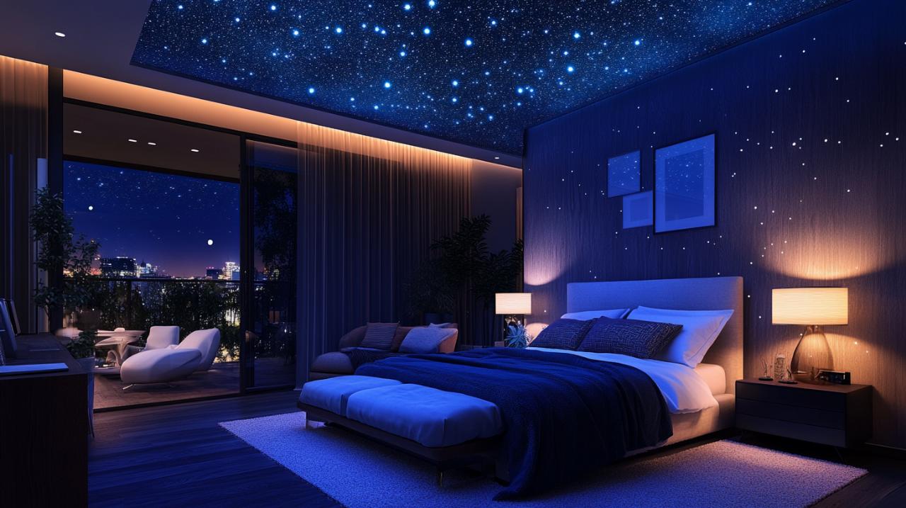 La elección del diseño de tu techo estrellado depende en gran medida de tus preferencias personales y del uso que le darás al espacio. Para un dormitorio, muchos optan por una configuración que simula el cielo nocturno con una disposición natural de estrellas, creando un efecto relajante ideal para el descanso. Algunos proyectos incluyen constelaciones específicas o patrones personalizados que reflejan momentos especiales o símbolos significativos para los residentes. En maderascovelo.es ideas para el hogar encontrarás múltiples ejemplos de cómo adaptar estas soluciones a diferentes estilos decorativos, desde ambientes modernos hasta espacios más clásicos. La intensidad y el color de la iluminación también juegan un papel crucial, ya que la tecnología LED RGBW permite ajustar la atmósfera según el momento del día o el estado de ánimo deseado. Además, el acabado del techo tensado puede ser lacado en tonos oscuros para potenciar el efecto espejo, aumentando la profundidad visual y haciendo que las estrellas parezcan más distantes y reales.